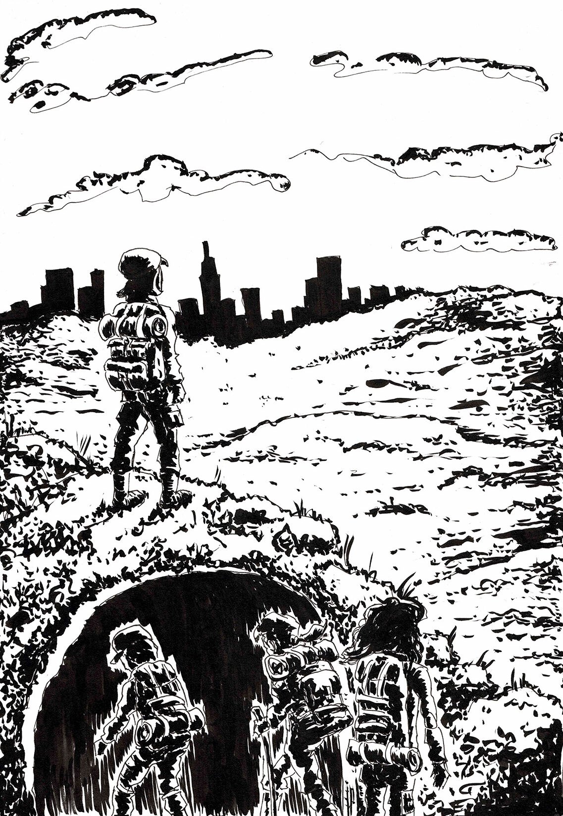 Working across ink, watercolor, pencil, charcoal, acrylic, and layered mark-making, each piece is developed through an iterative, process-driven approach – balancing structure and spontaneity.